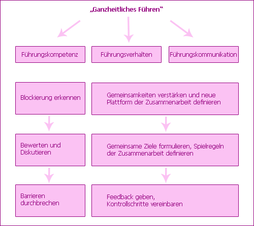 Diese „Synchronisation“ der Unternehmensziele mit den persönlichen Zielen und Werten der einzelnen Mitarbeiterinnen und Mitarbeiter bedingt einen ganzheitlichen Führungsansatz.